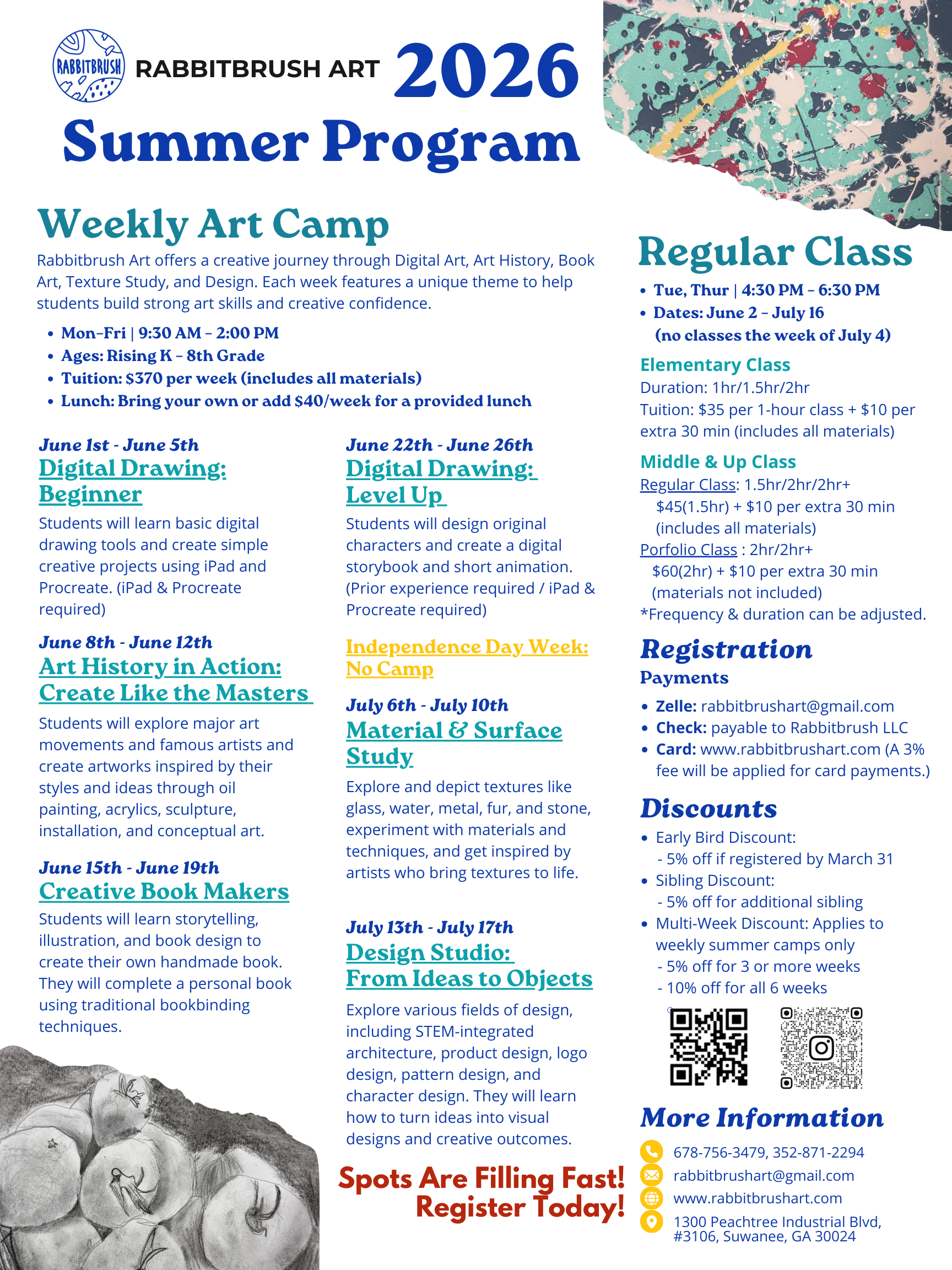 In this intermediate digital drawing camp, students will design their own original characters and create both a digital storybook and a short animation. They will learn character design, background illustration, storyboarding, and basic animation techniques while developing creativity and storytelling skills.
